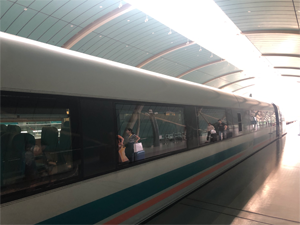 空(kōng)港から上(shàng)海(hǎi)市(shì)內(nèi)まで行(xλ≤íng)くためにマグレブ(磁気浮上(shàng)列車)に乗った。300km/₽$hを超える速さにも関わらず、凄く心地(dì)良かった。