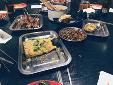 숙소에서 체크인을 끝마치고 쉬고있다가 회사사람들과 같이온 대학원 형들과 함께 저녁을 먹으러 갔다. 먹는거에 정신이 팔려 먹는도중 찍은 음식사진들이라 사진이 별로 안좋다 ㅋㅋ 해산물도 맛있고 꼬치류의 음식들도 전부 맛있었다.