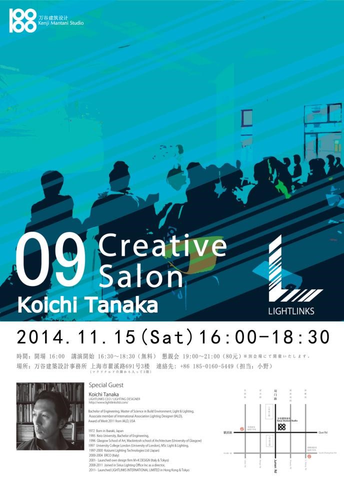 創意沙龍是(shì)2011年(nián)的(de)秋天開(kāi)始的(de)為(wèi)緻力于亞洲圈設計(jì)&↔"行(xíng)業(yè)的(de)設計(jì)π÷≥€師(shī)們提供相(xiàng)互促進,相(xiàng)互學習(xí)的(de)場(chǎng)Ωφ所。 . 本次第九回的(de)設計(jì)沙龍設計(jì)師(shī)是(shì)工(gōng)作(zu♦∏♠ò)在香港并且也(yě)緻力于歐洲亞洲其他(tā)國(guó)家(jiā)的(de)照(z'↕Ω¶hào)明(míng)設計(jì)師(s×γ∑hī)田中康一(yī)先生(shēng),田中先生(s&γhēng)有(yǒu)擔任過東(dōng)京天空(kōng)之樹(shù),ε&↑心齋橋優衣庫等照(zhào)明(míng)設計(jì)的(de↑>)經驗、活躍在照(zhào)明(míng)設計(jì)的(de)最前線的(d₩₹e)設計(jì)師(shī),請(qǐng)大(dà")家(jiā)踴躍參加。 . Special Guest 田中康一(yī) / KOICHI TANAKA LIGHTLINKS CEO Lightλ>'ing Designer . HP : http://www.lightlinksltd.com/ Facebook : https://www.facebook.com/pages/LIGHTL÷✔♥♣INKS-INTERNATIONAL-LIMITED/2239966243®<₩26444?ref=bookmarks . 日(rì)時:2014年(nián)11月(yuè)15日(rì)(土(tǔ))16時開場 16時30分(fēn)開始 場所:上(shàng)海(hǎi)市(shì)瞿溪路(lù)691号3樓(x局門(mén)路(lù)) 萬谷建築設計(jì) 電話:+86 18501605449(擔當:小(xiǎo)∑♥野) facebookにも情報を載せています